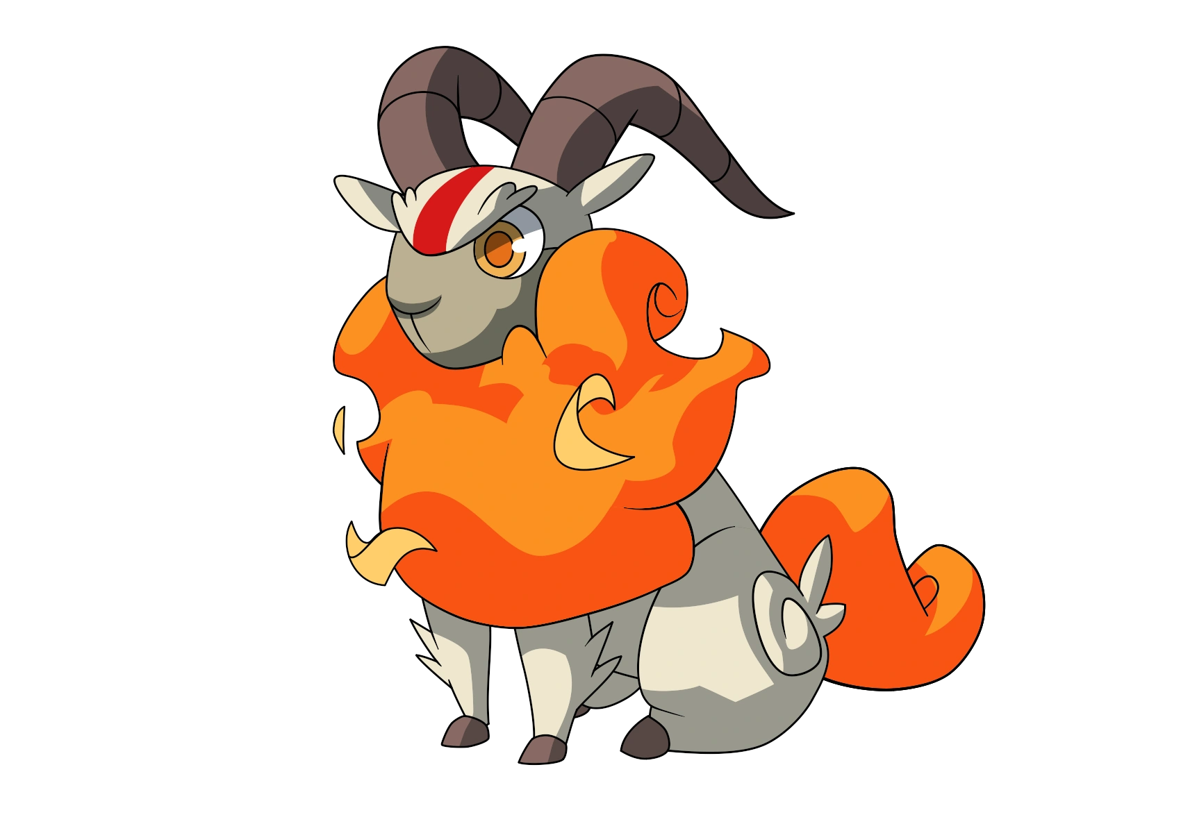 A daredevil Nexomon that jumps from rock to rock on mountainsides. Its horns generate fire to keep it warm.
